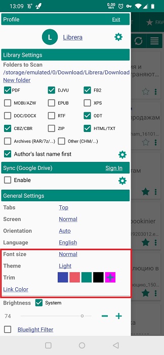 *Самое лучшее, что предлагает * Librera , - это возможность создавать темы для каждого профиля, который вы создаете в нем индивидуально. Вы можете создавать темы для своих профилей, созданных для изменения настроения, дневного и ночного чтения, жанров книг и т. Д.