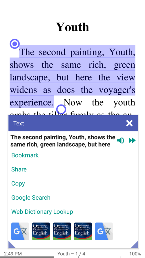 - modo de leitura de velocidade RSVP (Rapid Serial Visual Presentation) (com um toque!)
