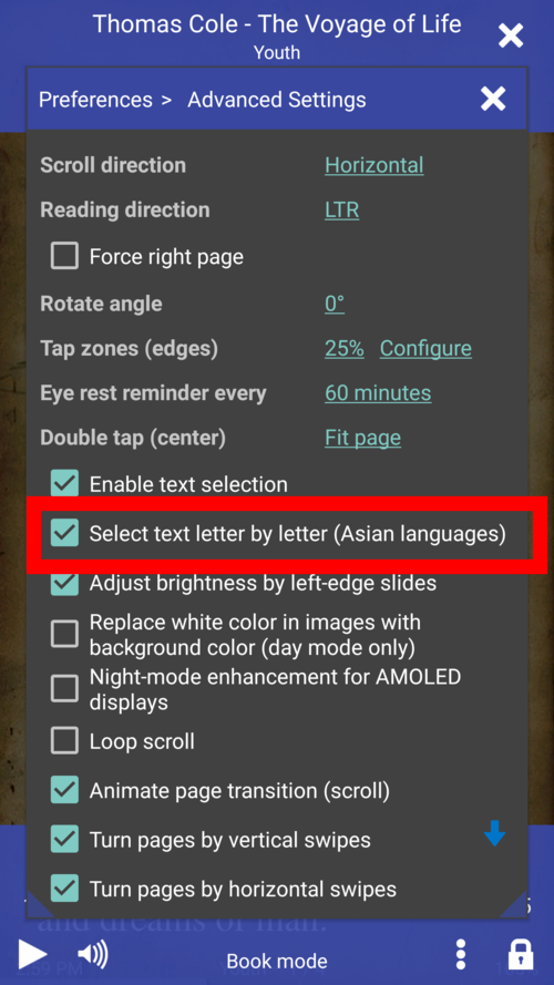 - O modo RSVP pode ser iniciado no menu do livro (leitura rápida)