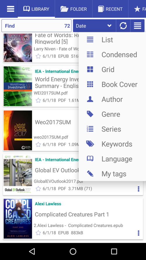 Para abrir uma pasta como um livro, navegue até ela na guia Pastas e toque em seu nome. Se ele possuir pelo menos um arquivo de imagem, você verá a opção Vincular em um livro.
