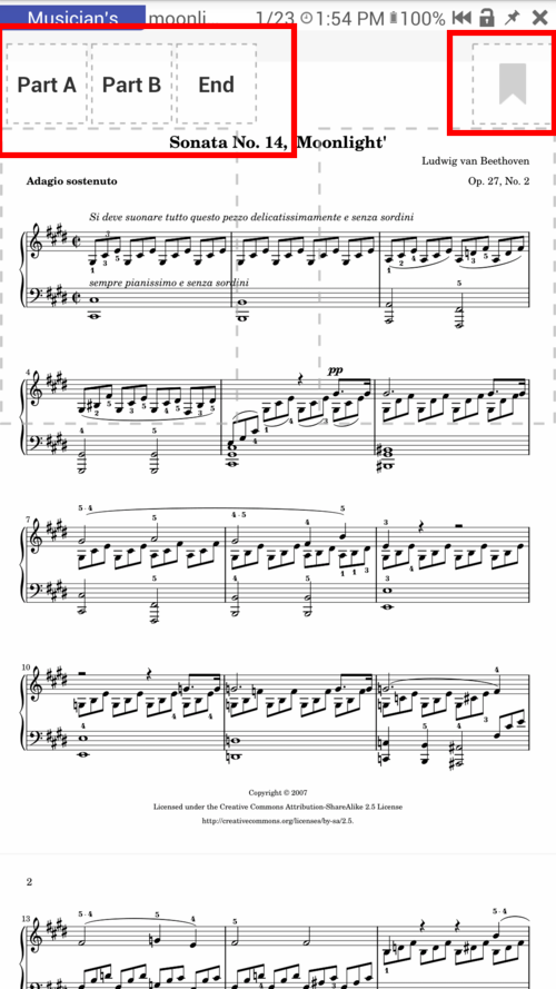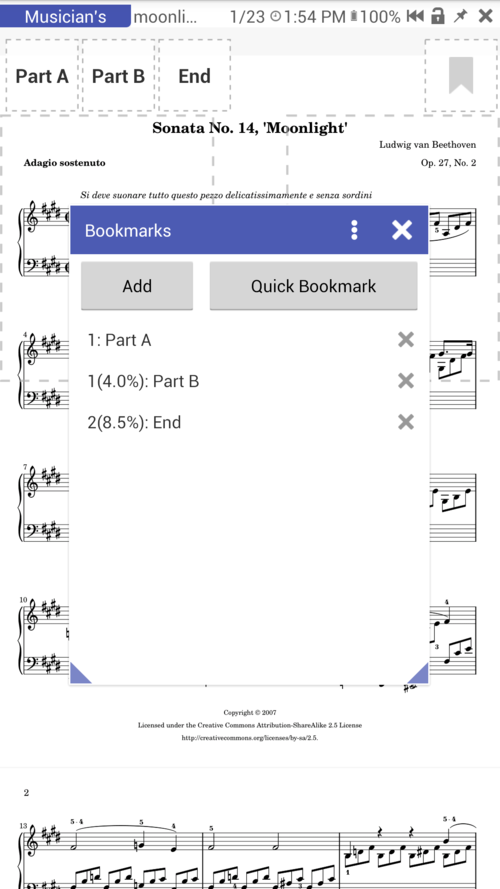 - Barra dei segnalibri per i segnalibri al volo (ad es. In modalità Musicista)