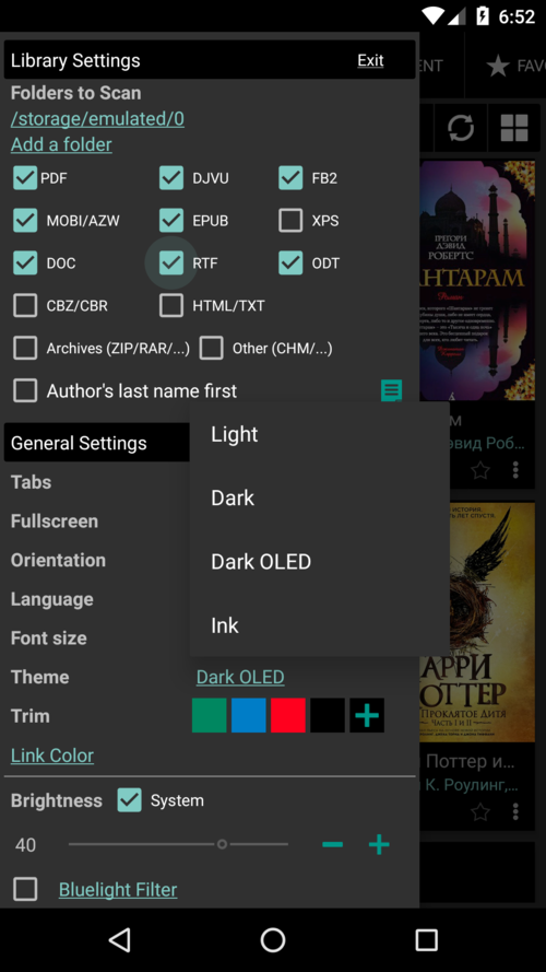 - Scegli il tema OLED scuro con il colore nero pece