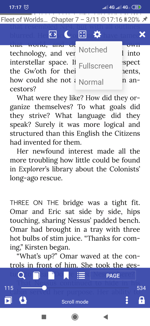 - Segnalibro mobile, con un indicatore mobile (salva automaticamente la posizione di lettura corrente e ti consente di tornare indietro, tramite il galleggiante nell'angolo in basso a destra, dopo visite temporanee ad altre parti e sezioni del libro). Per avviare (aggiungere) un segnalibro mobile, selezionare la casella Floating