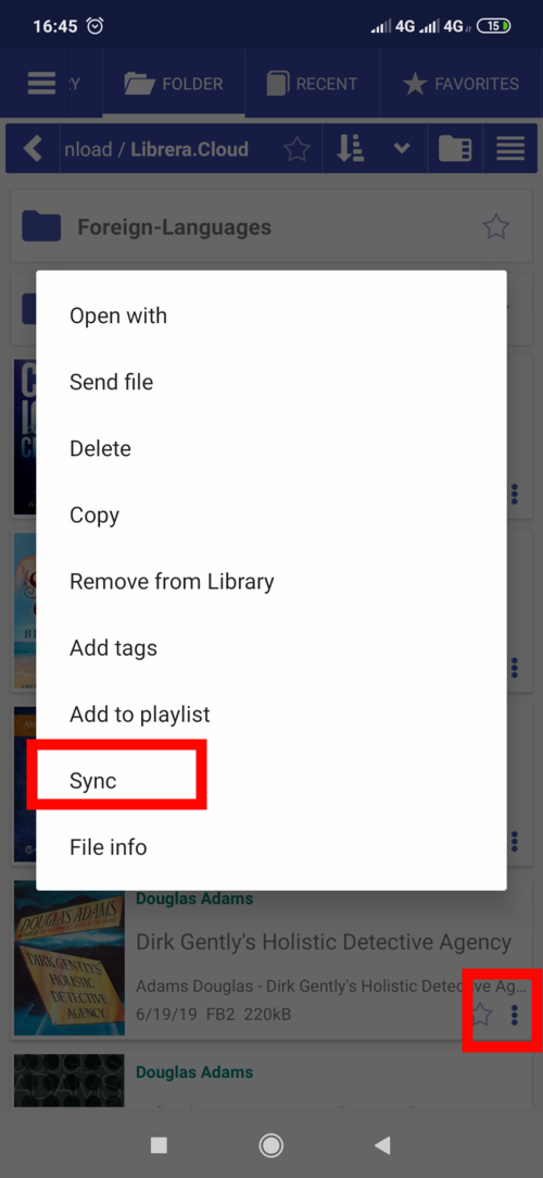 - Per sincronizzare un libro, invoca il suo menu e scegli Sincronizza