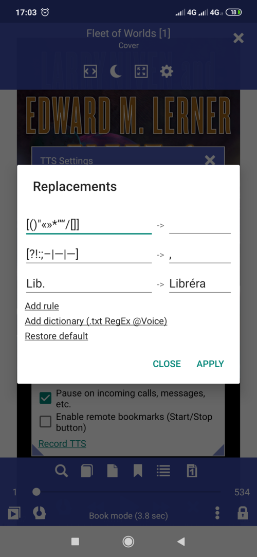 - Aggiungi un dizionario esterno: Librera supporta i file di sostituzione di @Voice Aloud e .txt RegEx
