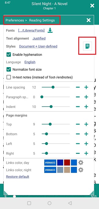 您将在**“首选项”**窗口的主标签中以及显然在_Reading Settings_标签中进行上述所有操作。