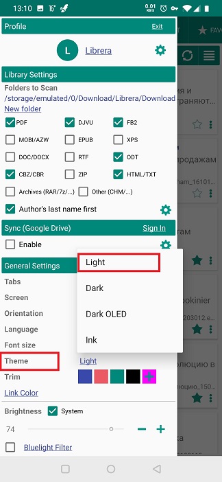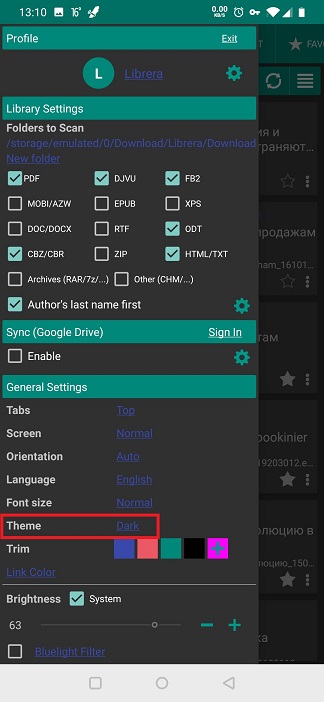Найкраще, що пропонує Librera, — це можливість окремо створювати кожен профіль, який ви створюєте в ньому. Ви можете створювати теми для своїх профілів для змін настрою, читання вдень і вночі, жанрів книг тощо.