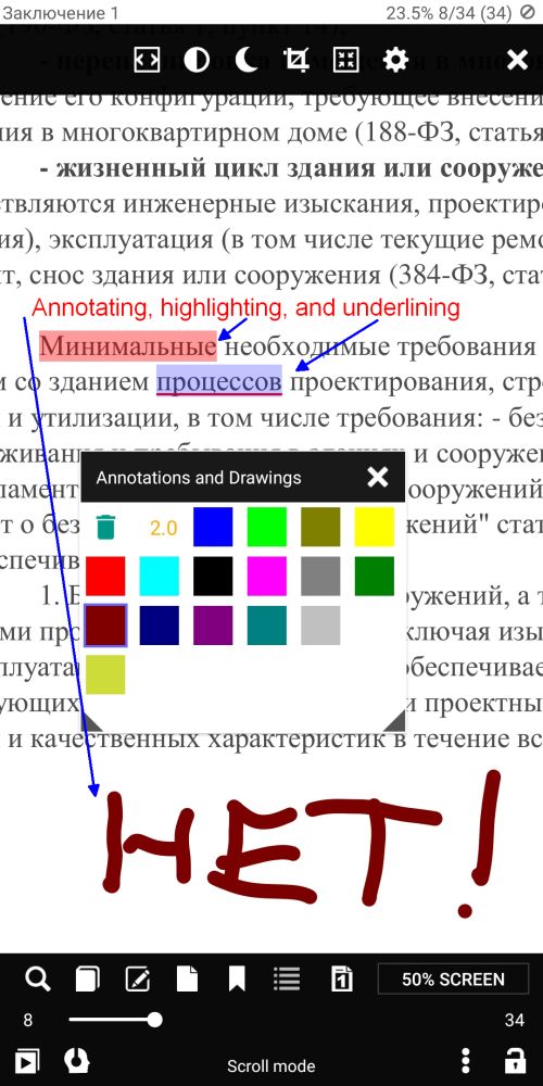 لجعل مستند PDF مناسبًا للرسم و/أو التعليق ، يجب على المستخدم التبديل إلى وضع التمرير. سيكشف هذا رمز Edit في القائمة السفلية.