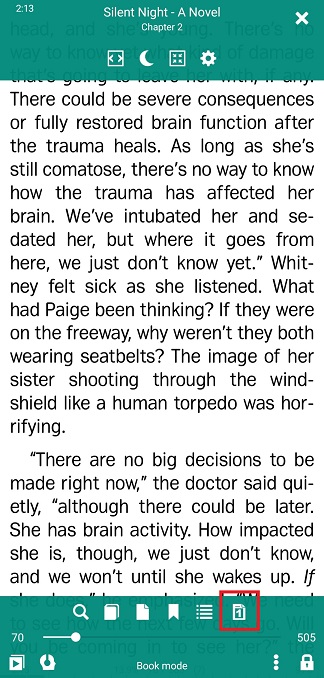 - Se a orientação da tela mudar (automática ou manualmente) para Landscape, você poderá acompanhar a mudança para o layout Duas Páginas