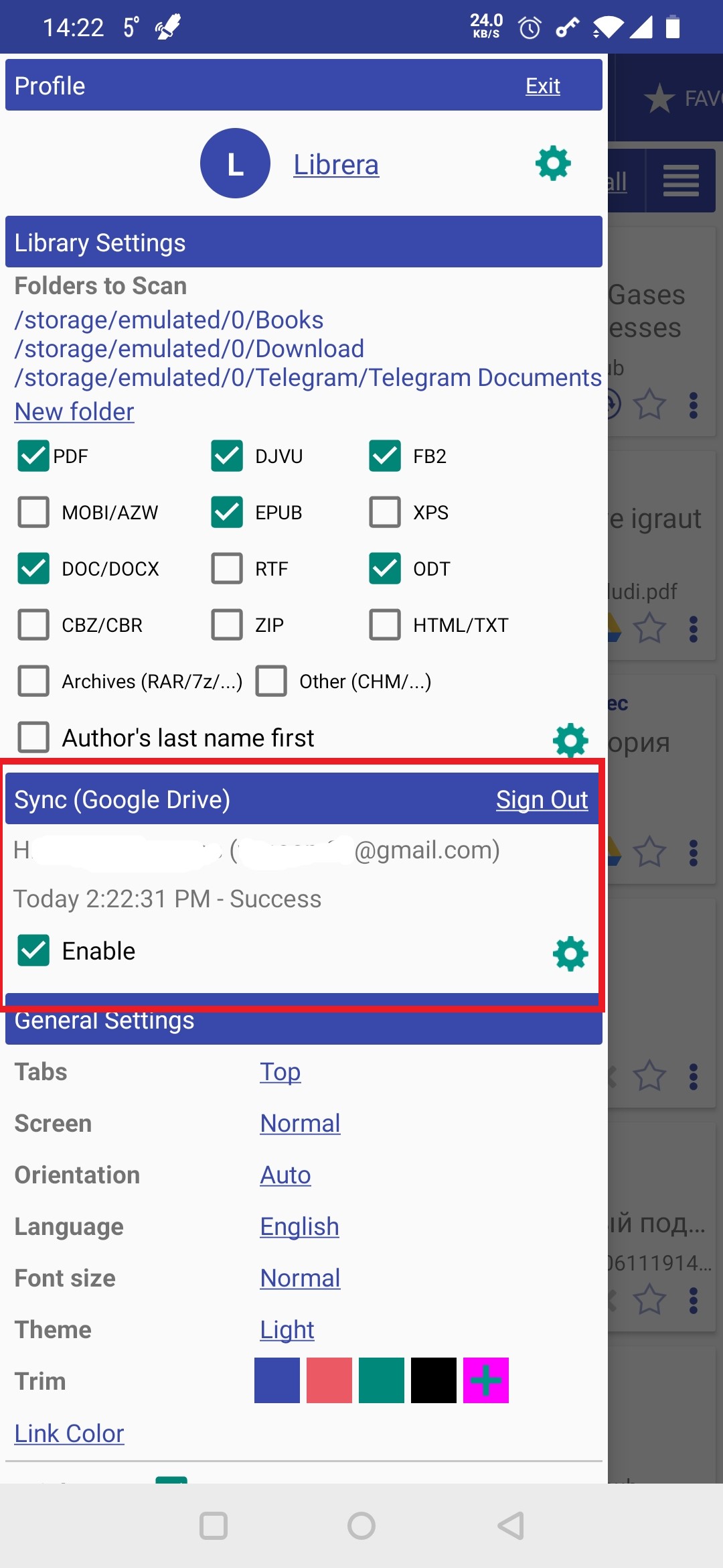 Причини вашої упередженості до сторонньої програми синхронізації можуть бути різними. Хоча ми постійно працюємо над точним налаштуванням та покращенням вашого досвіду синхронізації через Google Диск, ми визнаємо, що це все ще триває. Він все ще працює в експериментальному режимі і, зауважте, може раптово впасти на вас. Більше того, ви можете зіткнутися зі знаменитою Відмова в доступі до Google Drive, яка абсолютно не є виною Librera, а виникає через особливості конфігурації вашого пристрою. (Ви можете легко отримати більше інформації про проблему з Інтернету.)