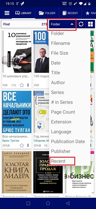 Ordenar su biblioteca por últimas lecturas